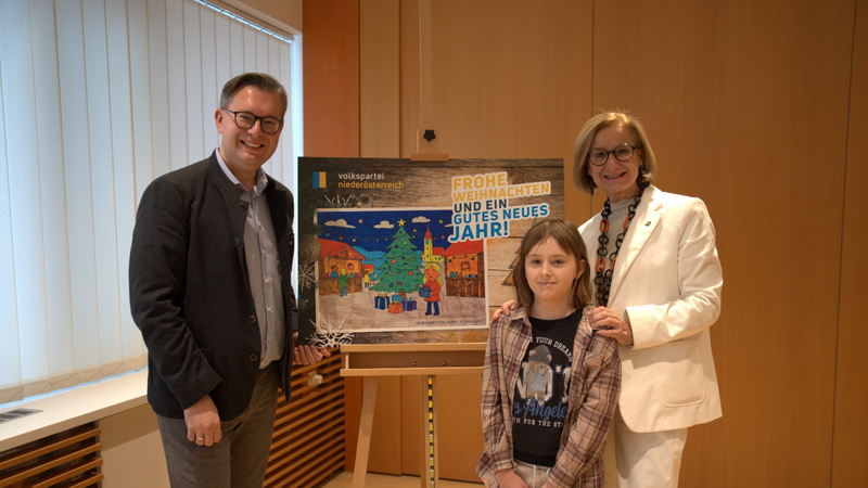 Die Volkspartei Niederösterreich hat gemeinsam mit Landeshauptfrau Johanna Mikl-Leitner das neue Advent-Schaukastenplakat vorgestellt. Basis dafür war ein landesweiter Kinderwettbewerb, bei dem mehr als 100 Zeichnungen eingereicht wurden. Das Siegerbild stammt von der zehnjährigen Hanna aus Biberbach und ist ab sofort in allen Bezirksgeschäftsstellen, Gemeindeparteien sowie in der Landesparteizentrale zu sehen. „Hannas Zeichnung zeigt auf wunderbare Weise, wie Kinder Weihnachten erleben – voller Freude, Wärme und Fantasie. Weihnachten erinnert uns jedes Jahr daran, wie wertvoll Zusammenhalt, Miteinander und Gemeinschaft sind“, sagt Landeshauptfrau Johanna Mikl-Leitner. VPNÖ-Landesgeschäftsführer Matthias Zauner freut sich über die große Beteiligung: „Der große Zuspruch zu unserem Malwettbewerb zeigt, wie viel Begeisterung und Kreativität in den Kindern steckt. Hanna hat mit ihrem Bild ein Stück Weihnachtsstimmung eingefangen, das jetzt in ganz Niederösterreich zu sehen sein wird.“